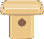 | 三方 | さんぼう | 神様に神饌をお供えするときなどに使用する食器の一種。3方向に象眼のある台の上に隅切りの折敷(すみきりのおしき)を乗せたもの。台と折敷は本来バラバラなのだが、取り扱い易いようにくっつけてあることがある。あくまでも食器であるため、原則として食べ物以外は乗せない。また、発音は「サンボウ」であり「サンポウ」ではない。寺では「三宝」と書くことが多いようだが、これは仏教の三宝(サンポウ)にあてたもののようである。(写真)ちなみに、全方向に象眼のあるものもあり、ご推察通り「四方(しほう)」という。 |