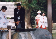 ※右写真は巫女から手水を受ける新郎